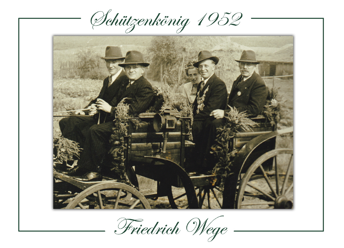 1934 Ferdinand Oldenburg 1966 Hartmut Lohmann 1991 Herbert Plenge 2016 Carsten Drafz "Der Zuverlässige" Kreiskönig